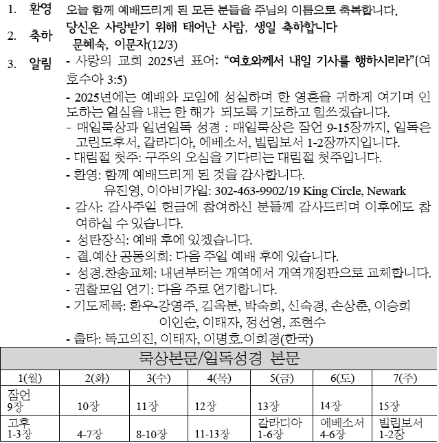 2025년 11월 30일 교회 소식