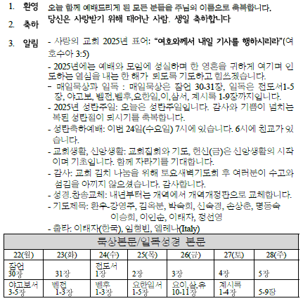 2025년 12월 21일 교회 소식