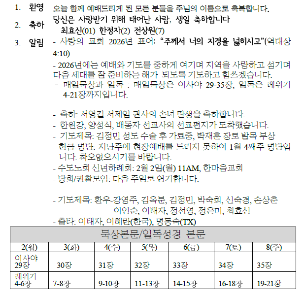 2026년 02월 01일 교회 소식