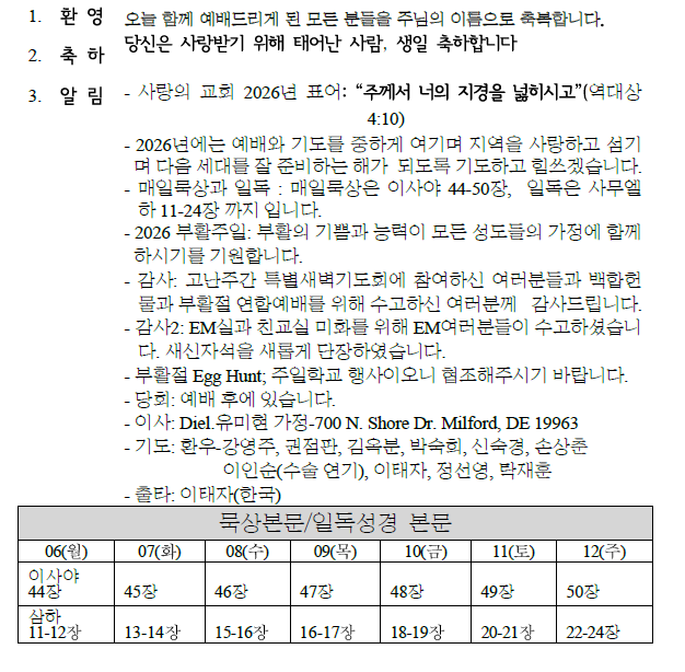 2026년 04월 05일 교회 소식